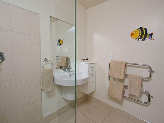 This self-contained apartment features full kitchen facilities, air-conditioning, laundry facilities, a satellite 42-inch flat-screen TV, DVD player and a balcony with full ocean views.